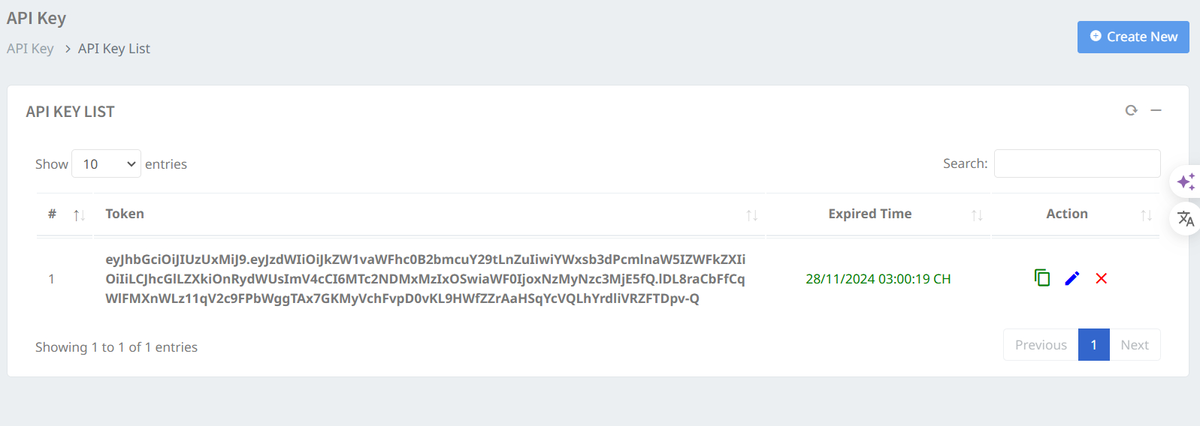 To work with vCDN API, you need to have at least one valid **API Key . API Key** is a security tool that allows access to vCDN API system without using Username and Password account.