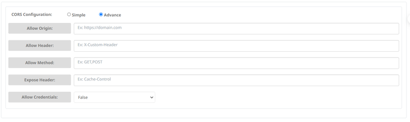 * You can allow Origins with domains in the list to access the output link by selecting **Allow** and entering the desired **domain :**