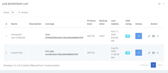 * Supports Adaptive Bitrate feature: The packaging system automatically combines channels with the same name with different qualities into ABR channels. Customers can create multiple Live Entrypoints and manage them through the portal interface.