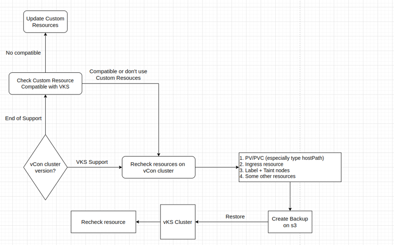 **Step 1:** Evaluate the current version of the vContainer cluster and the corresponding vKS cluster to migrate. At this point, there will be 2 cases (step 2 and step 3)