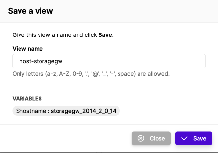 **View** allows you to create perspectives for the dashboard, saving variable values for later use.