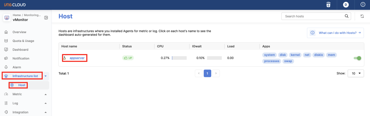 * After running the command and completing the installation, you will see the server in the **Infrastructure List/Host** page.