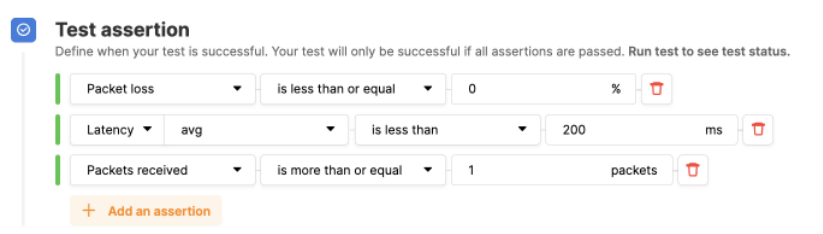 Assertion defines what you expect about the API Test results. If the returned results meet what you define, API Test will show that the hostname you are testing is successful, and vice versa, API Test will show that the hostname you are testing is successful. test is failed. The system will automatically add the Assertion status code for you after you Run the test, you need to define at least one Assertion for the API test.