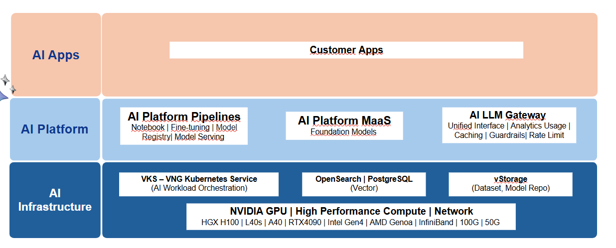 * Tích hợp với hệ thống lưu trữ như **vStorage** để lưu dữ liệu huấn luyện, model registry và đầu ra.