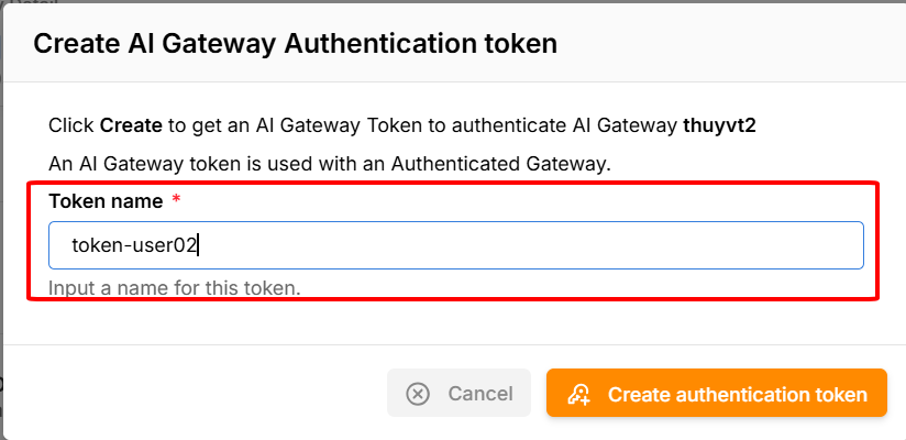 Mỗi token sẽ gắn liền với AI Gateway cụ thể và có thể được sử dụng để gọi API hoặc truy cập Gateway một cách an toàn.