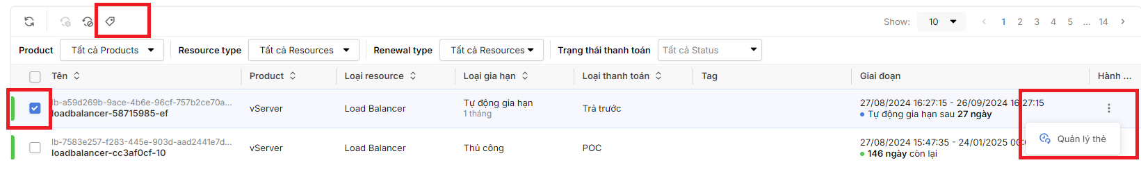 * Khi bạn gắn tag cho tài nguyên, thông tin tag này sẽ **không được đồng bộ ngay lập tức** vào hóa đơn.