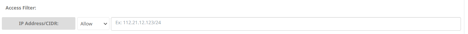 * **WhiteList IP:** Bạn có thể add các danh sách IP của các Origin cho phép truy cập vào link đầu ra bằng cách chọn **Allow** và nhập **IP Address** hoặc **CIDR** mà bạn mong muốn: