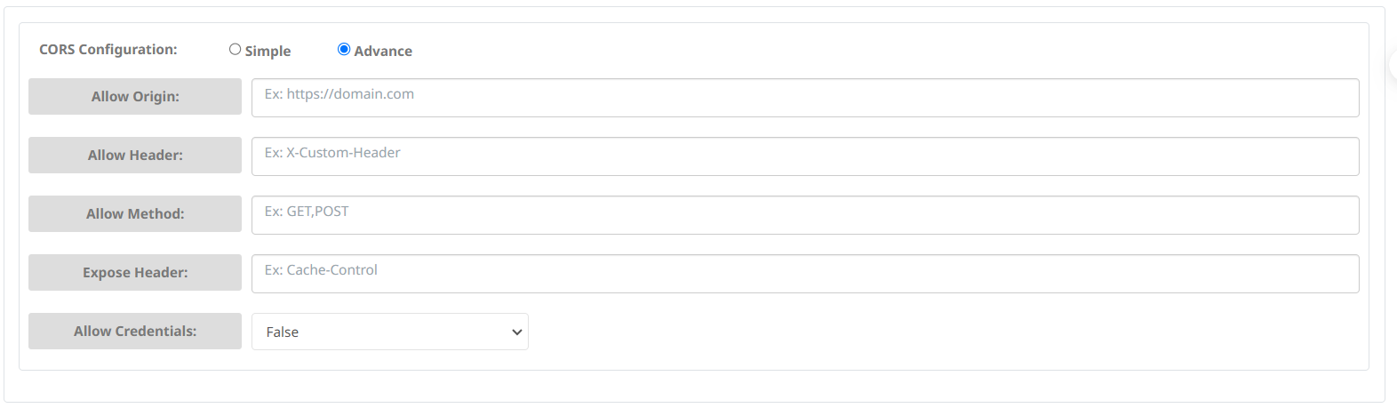 * Bạn có thể cho phép Origin có domain trong list có thể truy cập link đầu ra bằng cách chọn **Allow** và nhập **domain** mong muốn: