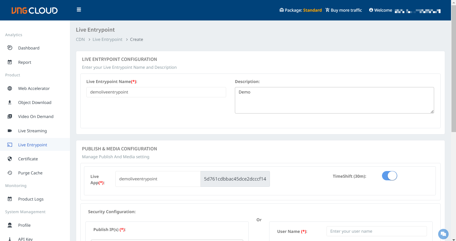 Sau khi bạn tạo xong Live Entrypoint và Live Streaming, lúc này, bạn có thê cấu hình và truy cập vào live thông qua: