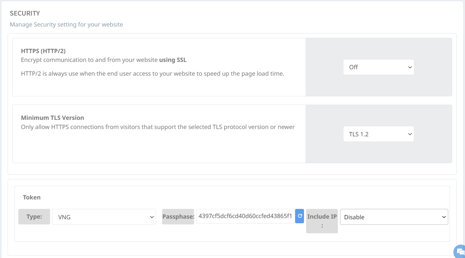 * **Minimum TLS Version**: Phiên bản thấp nhất của giao thức TLS được phép sử dụng. Chúng tôi đang hỗ trợ các giao thức TLS 1.0, TLS 1.1, TLS 1.2, TLS 1.3. Bạn hãy chọn sử dụng các phiên bản cao (TLS 1.2 hoặc 1.3) để đảm bảo tính bảo mật.