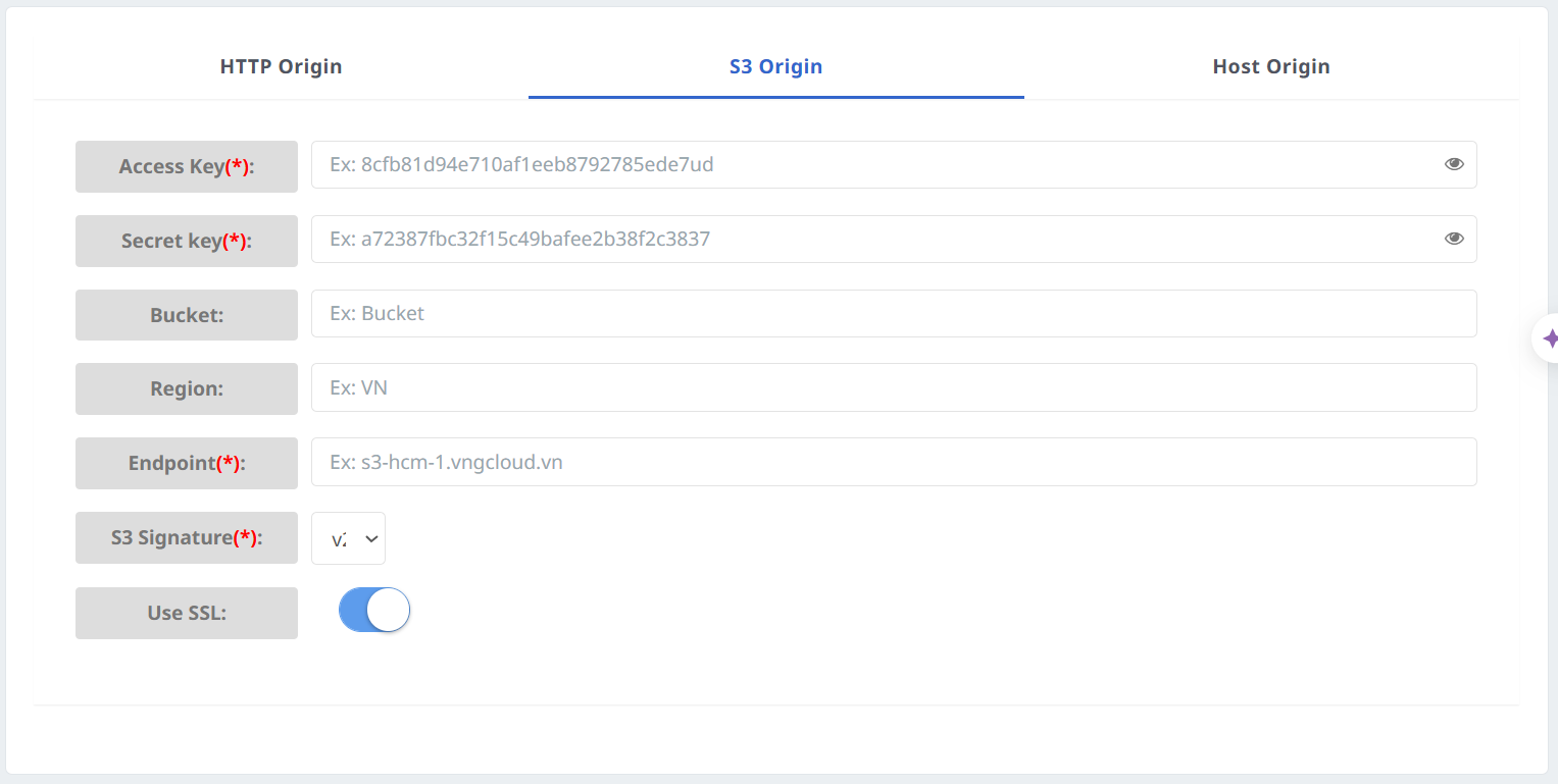 * **Use SSL:** Chọn sử dụng SSL để mã hóa kết nối giữa vCDN và S3 Origin.