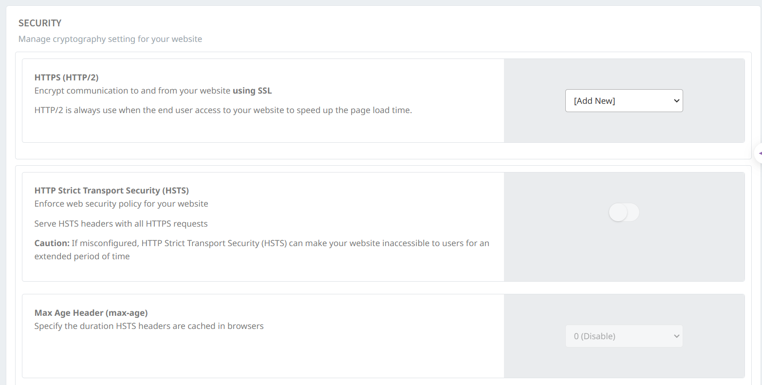* **Always Use HTTPS:** Bật hoặc tắt tính năng tự động chuyển hướng tất cả các yêu cầu HTTP sang HTTPS nhằm tăng cường bảo mật và cải thiện trải nghiệm người dùng.
