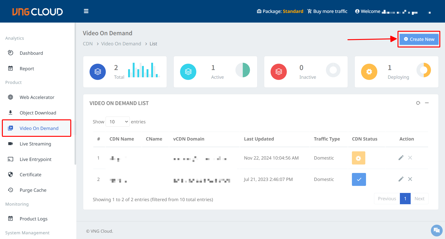 2. Chọn mục **Video On Demand**, sau đó chọn **Create new.**