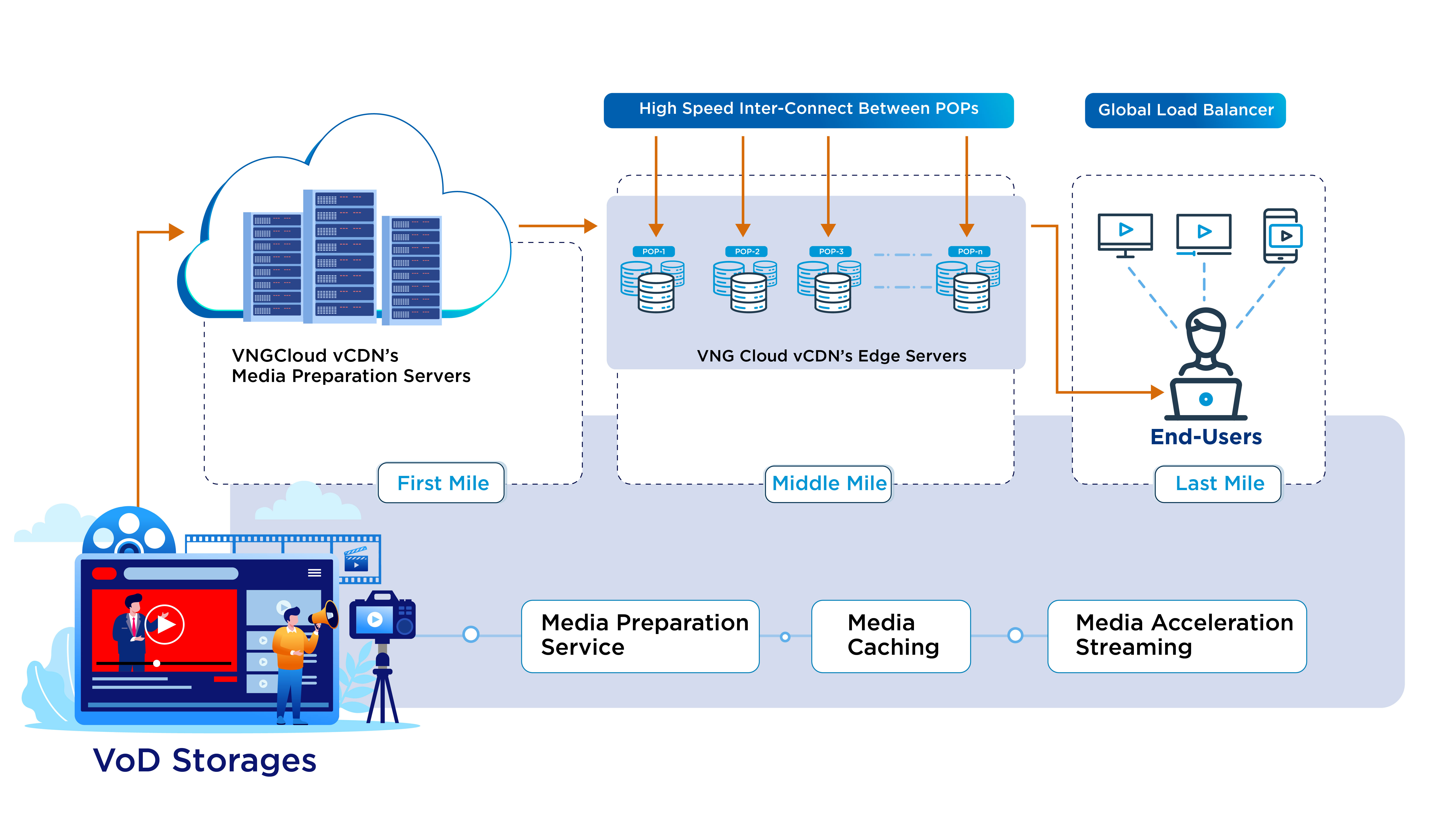 * **CDN Packaging:** Hệ thống vCDN sẽ packaging media từ file video gốc của khách hàng