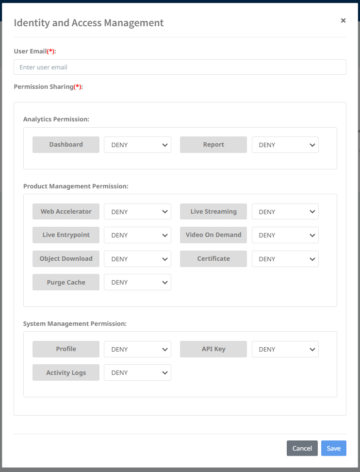 * Phân quyền có thể được áp dụng lên từng loại đối tượng trên hệ thống CDN, bao gồm: