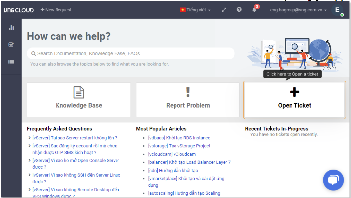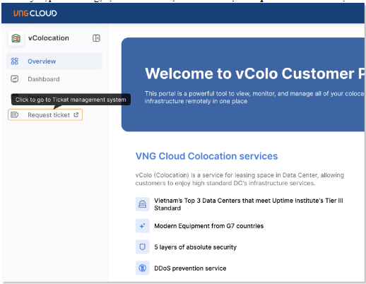 Tính năng này cho phép bạn gửi các yêu cầu cần hỗ trợ liên quan đến dịch vụ vColo.