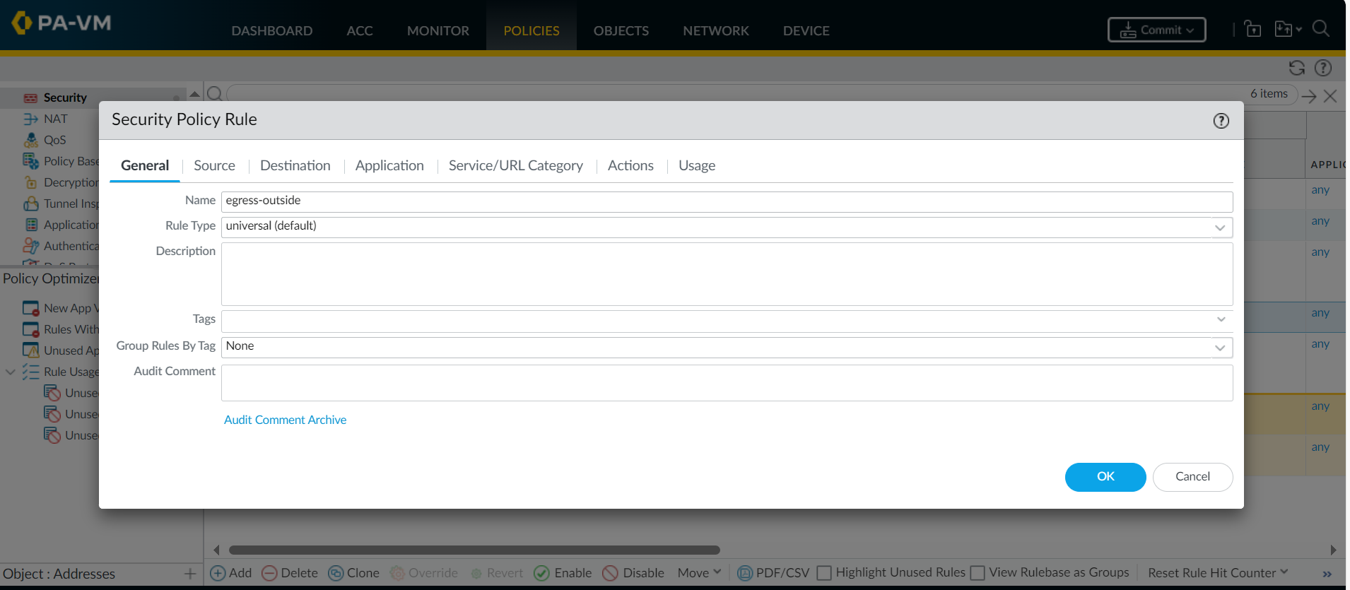 * Đối với Target, hãy nhập **Target CIDR là địa chỉ IP Network Interface 2 của Palo Alto.**