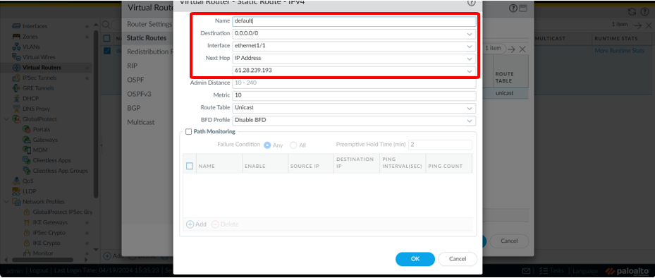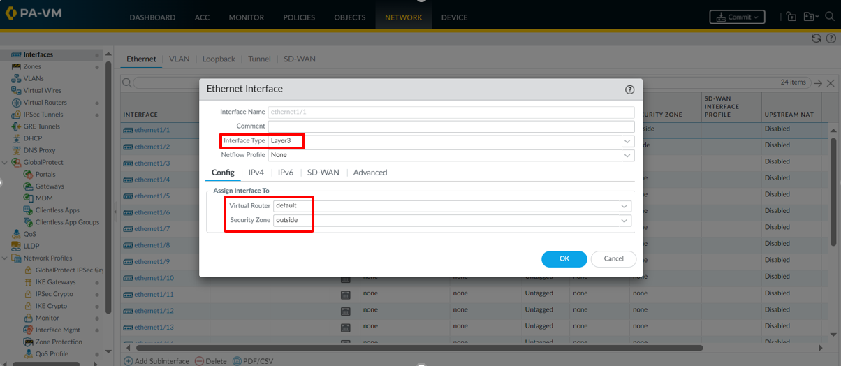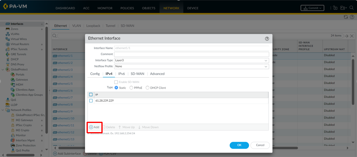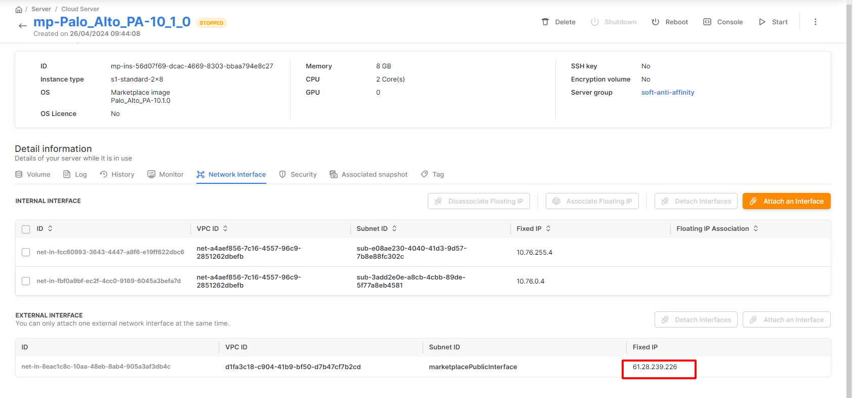 * Để lấy thông tin IP này bạn vào phần **Network Interface** của **Palo Alto** để xem thông tin