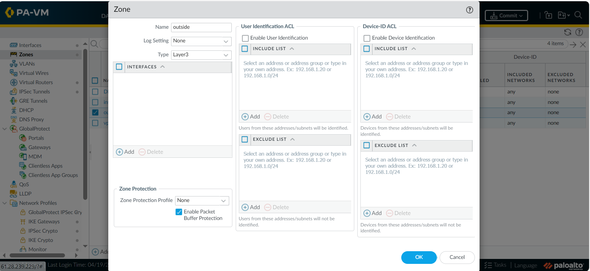 **Bước 4:** Bạn cần tiến hành khởi tạo 1 Zone Inside và 1 Zone Outside theo hướng dẫn bên dưới: