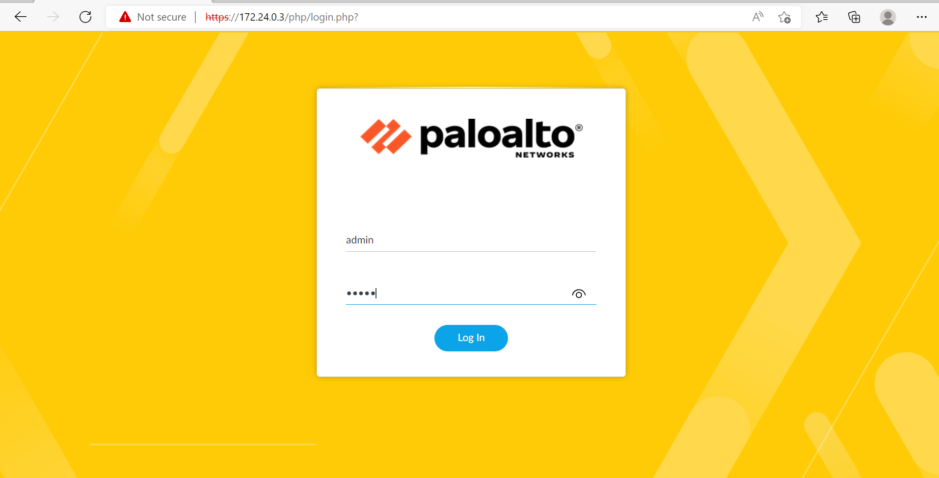 **Bước 2: Sau khi server chạy Palo Alto được khởi tạo thành công**. Để vào GUI của Palo Alto bạn cần có 1 vServer chạy Windows. Sau đó bạn truy cập vào bằng IP Internal Interface với tên đăng nhập và mật khẩu mặc định là: **admin/admin**