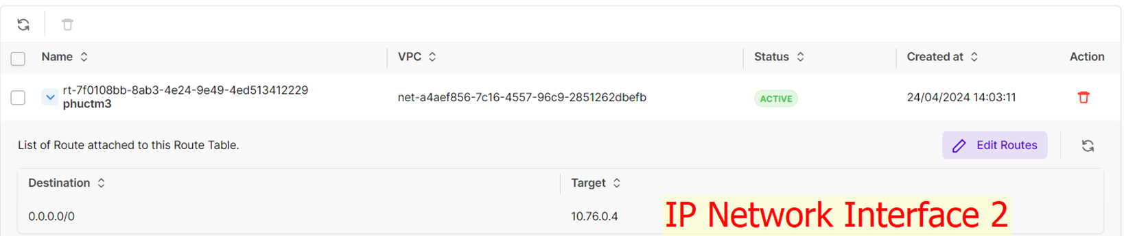 **Bước 7:** Chọn <img src="https://docs-admin.vngcloud.vn/download/thumbnails/73762068/image2024-4-16_15-40-3.png?version=1&#x26;modificationDate=1713256805000&#x26;api=v2" alt="" data-size="line">tại Route table vừa tạo sau đó chọn **Edit Routes.**