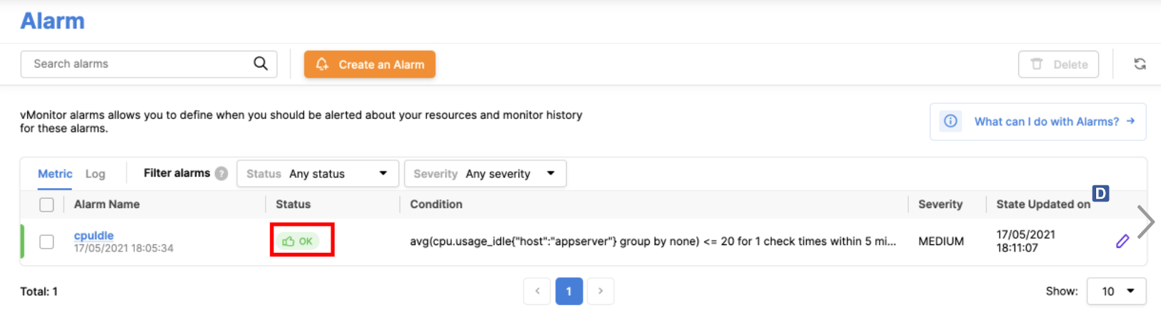 * Tên Alarm phải là duy nhất trong một tài khoản GreenNode cho đến khi Alarm đó bị xóa.