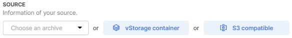 Tuỳ vào việc dữ liệu bạn đã archive ở đâu, bạn có thể chọn 1 trong 3 nơi dữ liệu log được archive bao gồm: nguồn **archive** đã tạo trước đó, **vStorage container** hoặc **S3 compatible**.