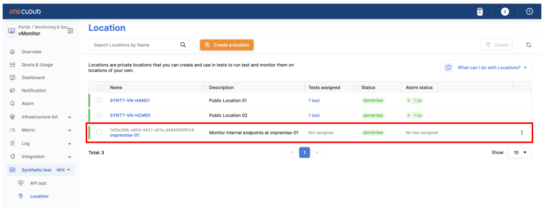 Private Locations cho phép bạn theo dõi các ứng dụng/dịch vụ nằm trong mạng nội bộ của bạn hay bất kì private endpoints nào mà không thể truy cập từ internet.
