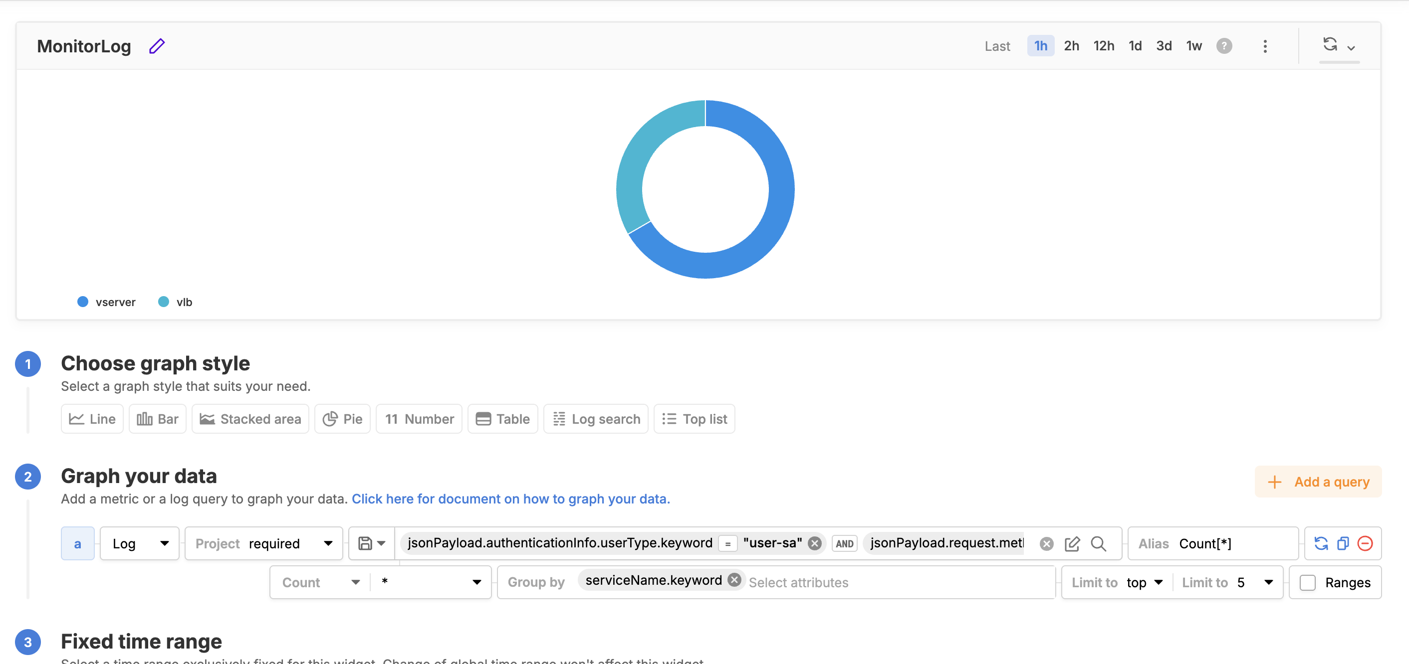 3. Trong màn hình dashboard details, chọn **Add a widget ⇒** chọn **Log** và chỉnh sửa query theo nhu cầu của bạn.