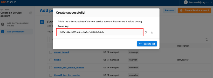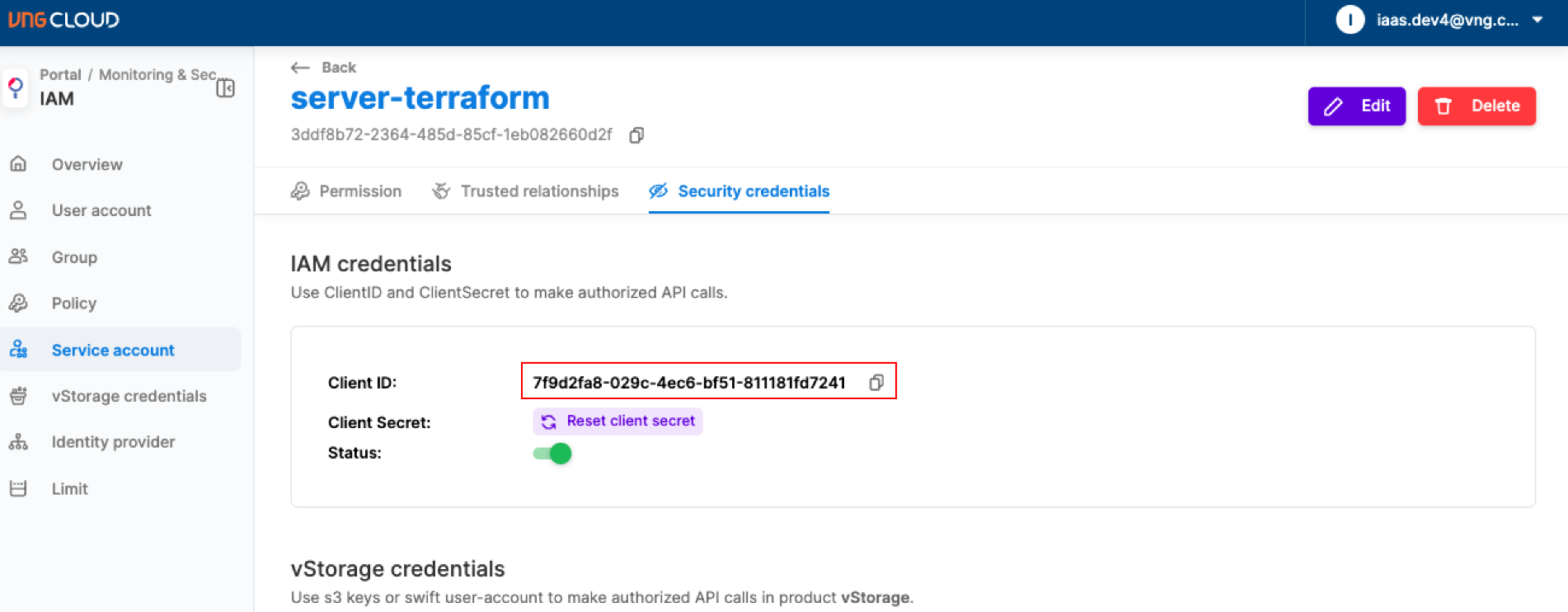 * **Client\_secret:** Lấy khi khởi tạo Service account tại trang chủ **IAM** hoặc có thể reset lại tại trang IAM/ Service accoun&#x74;**/ Tab Security credentials**