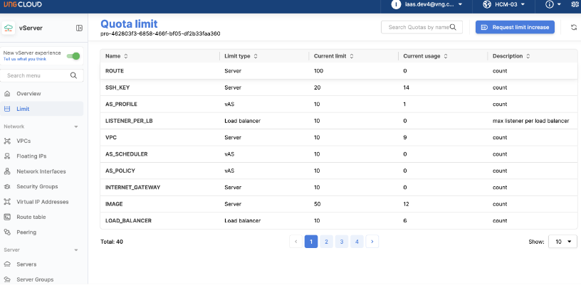* **project\_id**: thông tin project của bạn, bạn có thể lấy ở [{Tab Limit}](https://hcm-3.console.vngcloud.vn/vserver/limit) trên vServer Portal, Ví dụ: **pro-462803f3-6858-466f-bf05-df2b33faa360:**