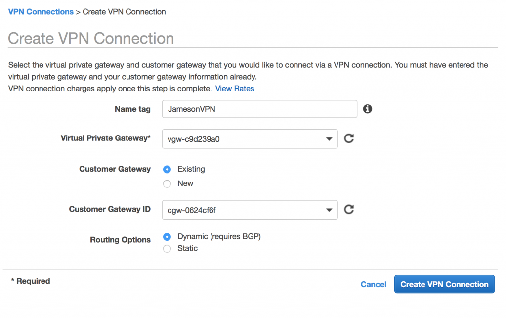 Điền tên Virtual Private Gateway (ví dụ Office VPN)