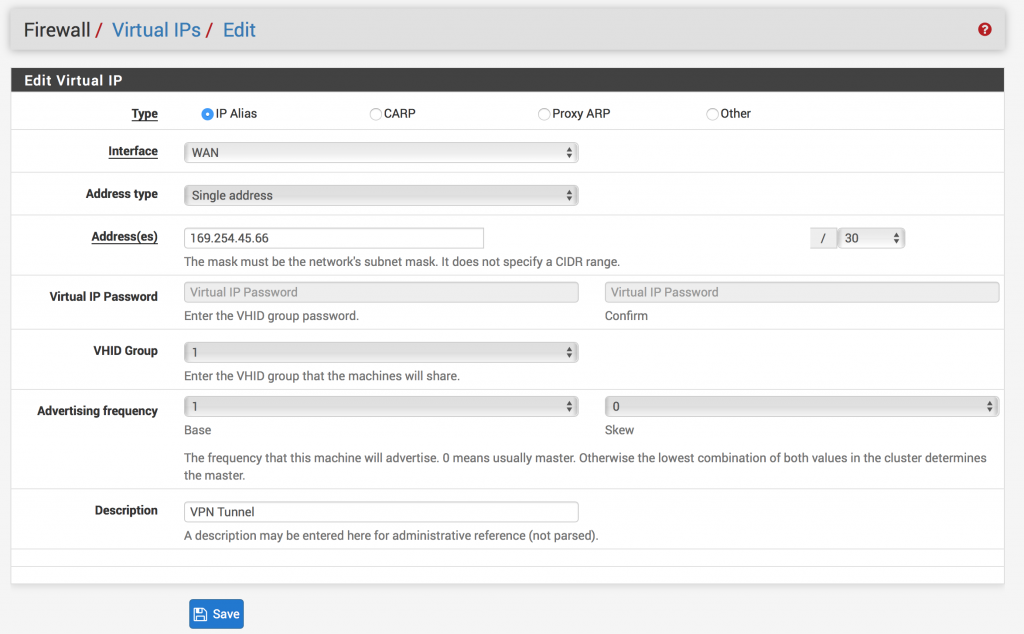 Trọng pfSense, thiết lập Remote Gateway với IP tìm thấy trong tệp tin cấu hình: