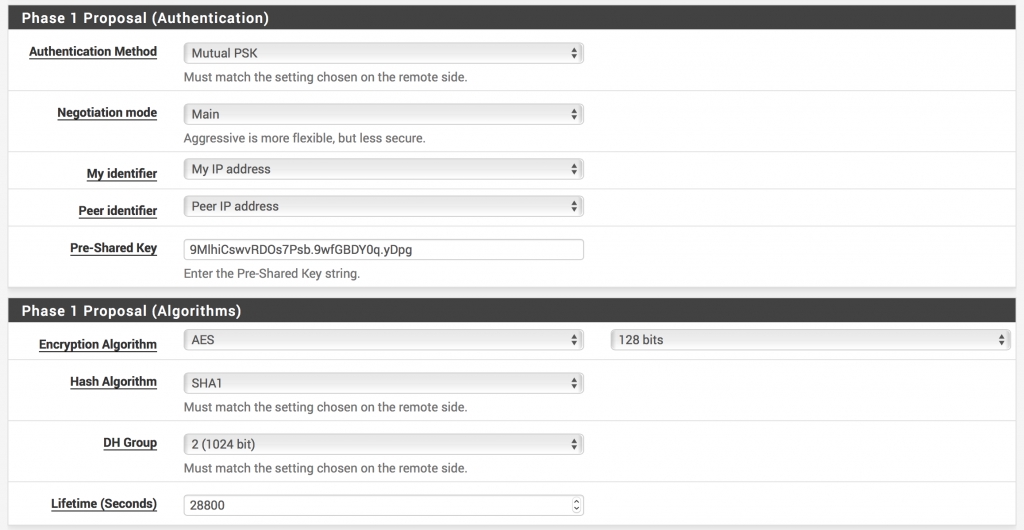 Trong pfSense, thiết lập Pre-Shared Key với key được tìm thấy trong tệp tin cấu hình.
