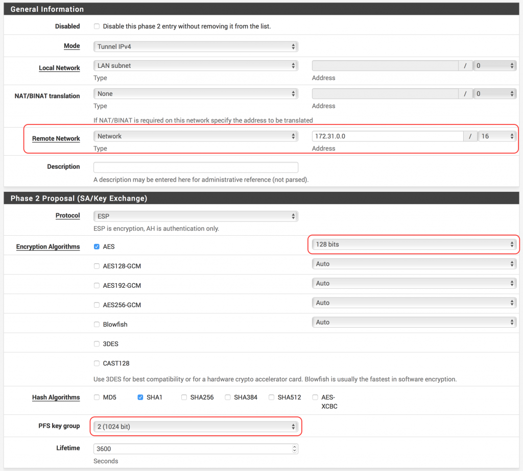 Đảm bảo thuật toán Hash Algorithm được thiết lập là SHA1, DH Group được thiết lập là 2 (1024 bit) và Lifetime (Seconds)được thiết lập là 28800