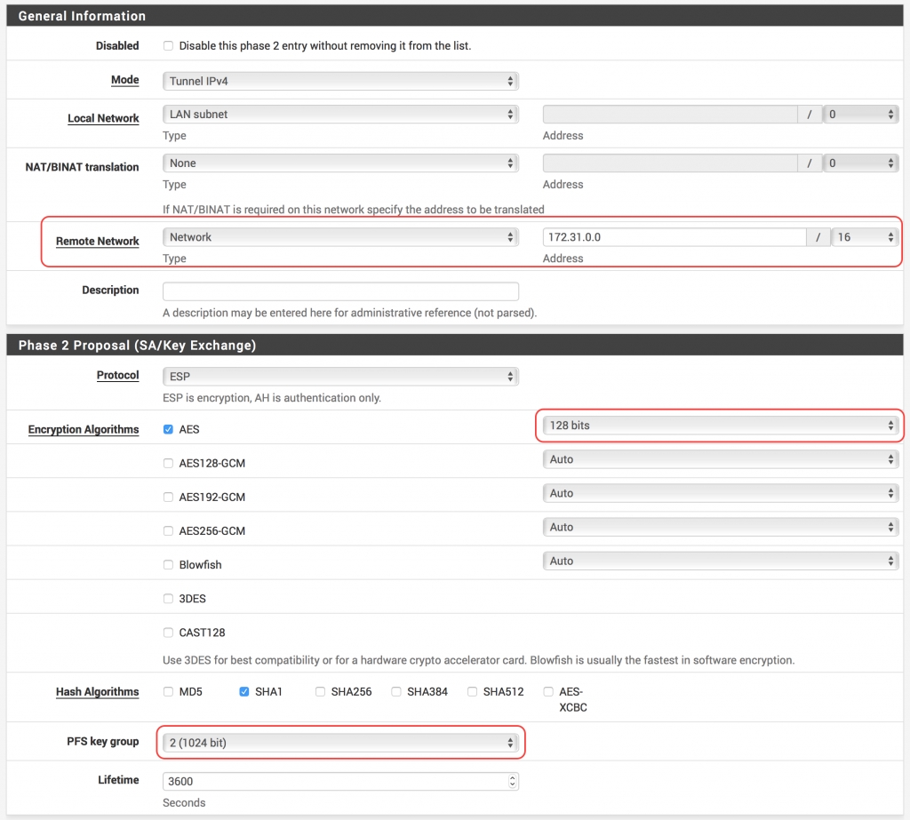 Trong pfSense, bên dưới chỗ kết nối VPN connection, chọn Show Phase 2 Entries và sua đó chọn lại Add P2
