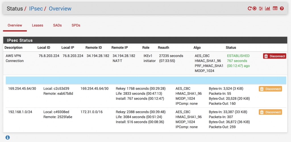 Sau vài giây, làm mới lại trang và đảm bảo trạng thái VPN là ESTABLISHED. Nếu là CONNECTING, hãy kiểm tra thiết lập lại một lần nữa.