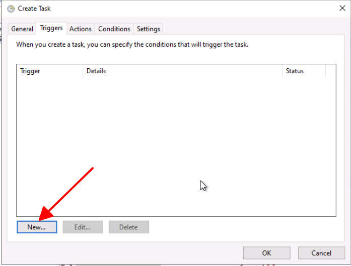 * Tại mục **Trigger**, chọn **New** sau đó chọn bạn muốn task chạy tự động