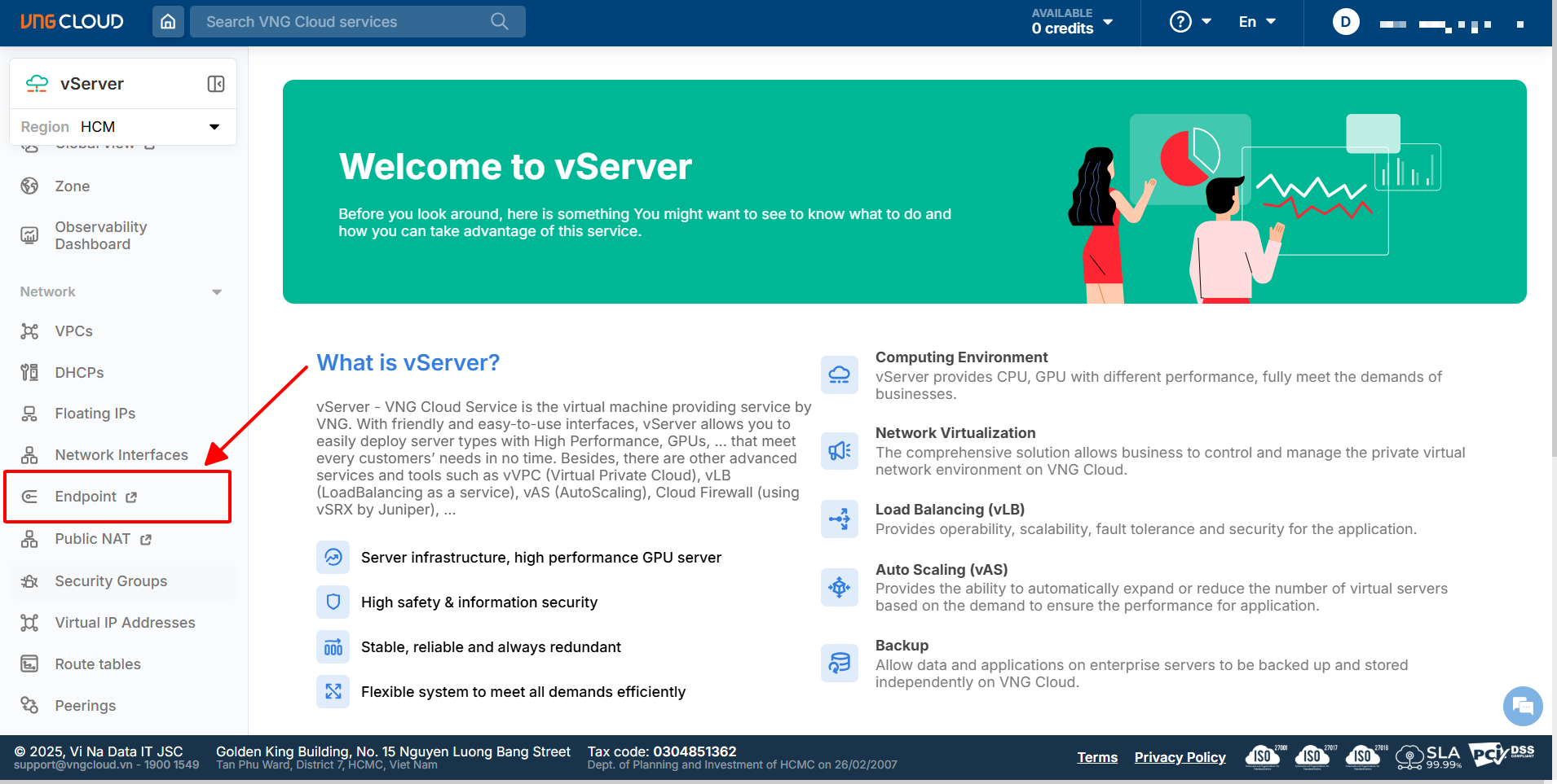 Dưới đây là hướng dẫn cách tạo endpoint để kết nối vStorage thông qua dịch vụ Endpoint trên hệ thống vServer, nhằm đảm bảo backup đi qua đường private: