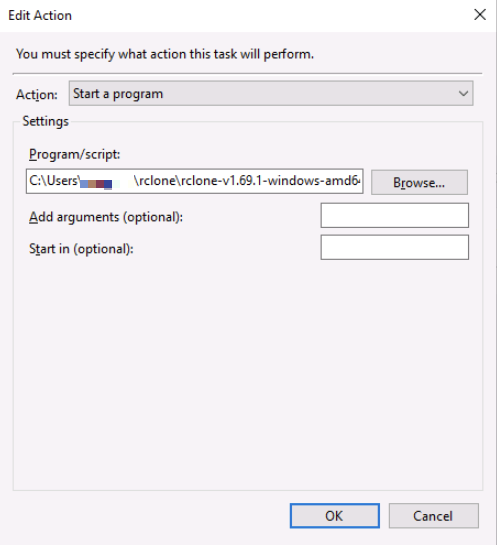 * Tại mục **Program**/ **script**: chọn thư mục `backup-smb.ps1` mà bạn đã tạo