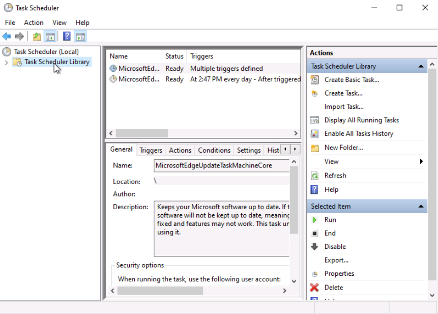 * Đầu tiên, trên máy chủ, bạn vào **Task Scheduler** sau đó chọn **Task Scheduler Library** và tiếp tục chọn **Create Task**.