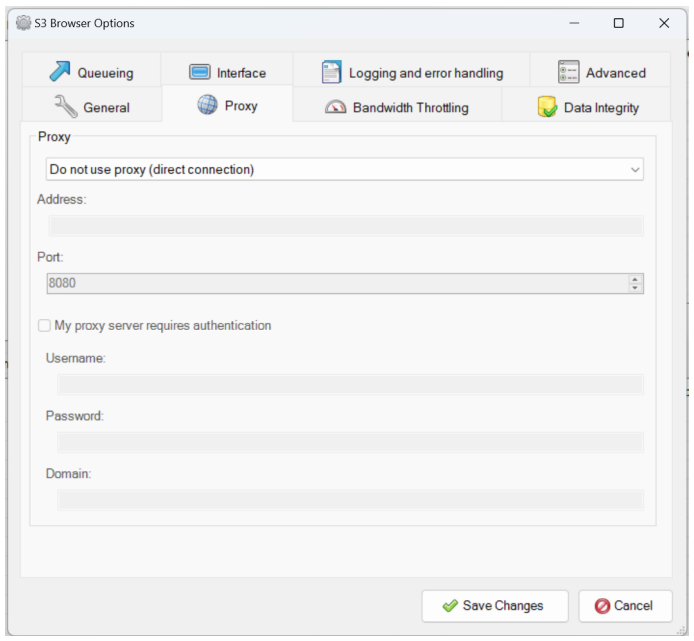 Cấu hình proxy (nếu có):