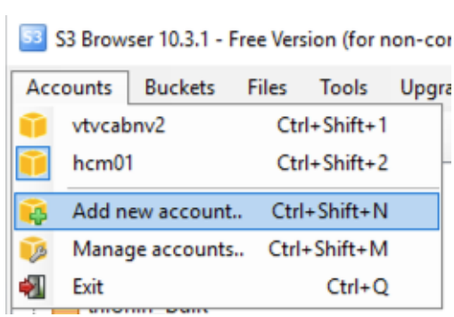 2. Mở ứng dụng **S3 Browser** → **Account** → **Add new account**