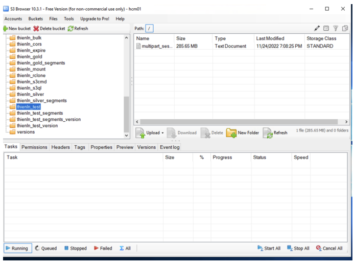 6\. Sau đó nếu S3 Browser kết nối thành công sẽ ra kết quả như sau: