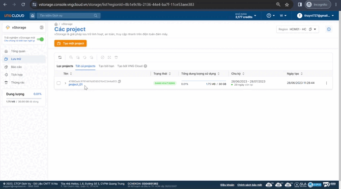 1\. Đăng nhập vào [https://vstorage.console.vngcloud.vn](https://vstorage.console.vngcloud.vn/storage/list).