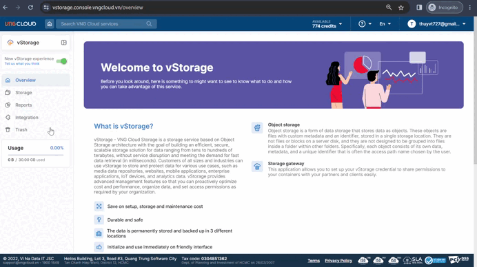 * Để sử dụng tài khoản Service Account truy cập vào tài nguyên vStorage thông qua vStorage API, S3 Rest API, Swift Rest API, hãy xem chi tiết tại [API developers](https://docs.vngcloud.vn/vng-cloud-document/vn/vstorage/object-storage/vstorage-hcm03/api-developers).