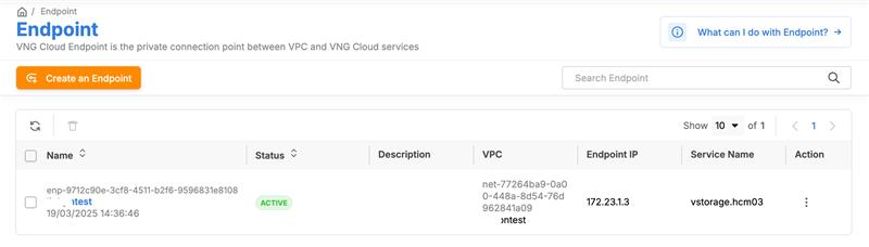 <https://hcm-3-vnetwork.console.vngcloud.vn/endpoint/list>
