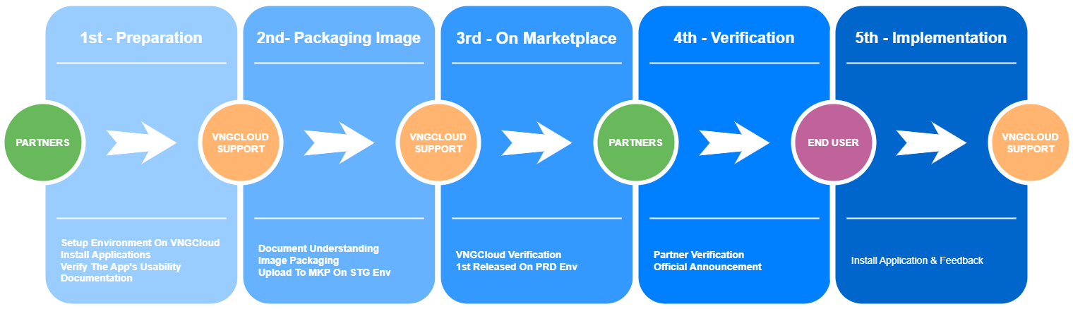 1. **Preparation:** The partner sets up the environment, tests the application's usability on the GreenNode environment, and prepares necessary documentation.