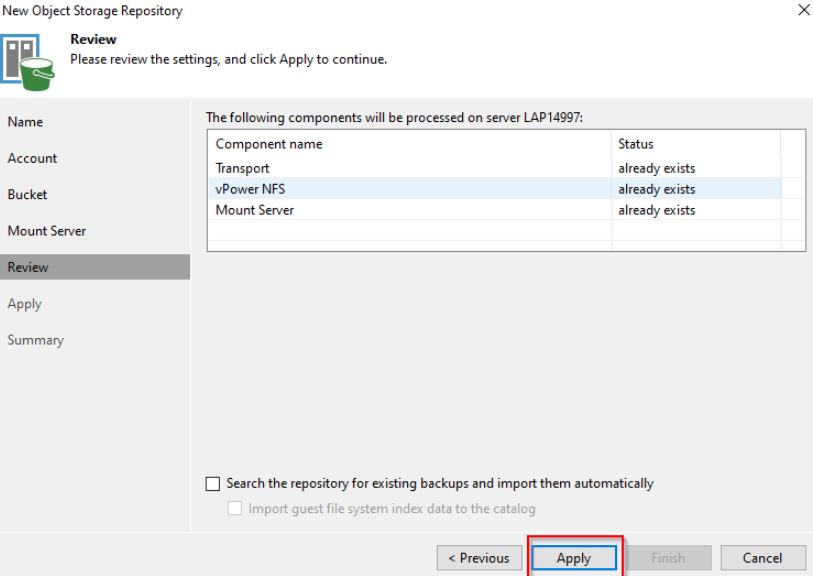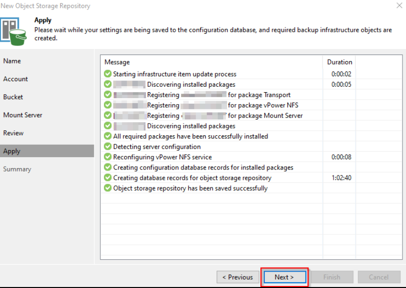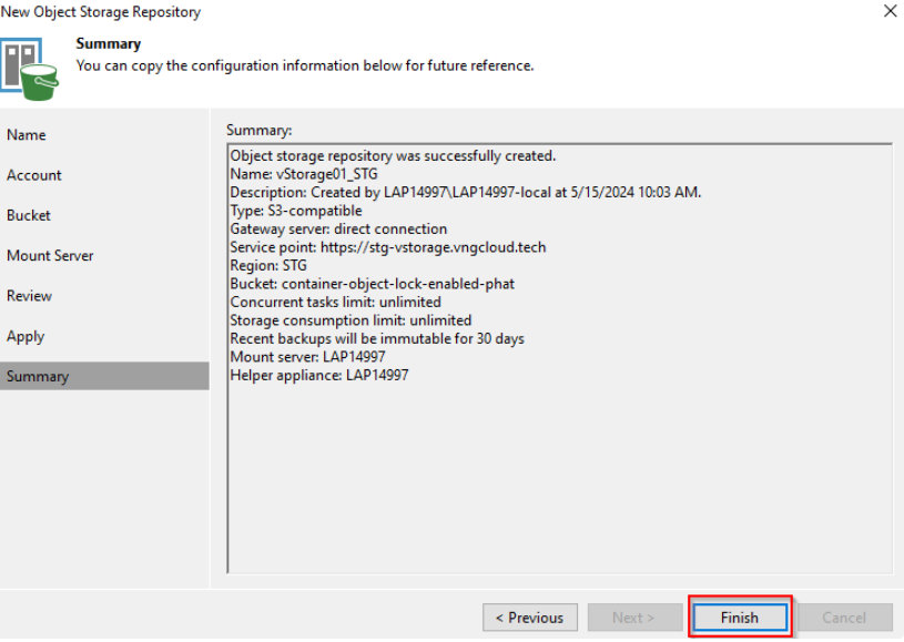 5. In "Capacity Tier", continue to click "Apply". The system will process the creation of the Repository;