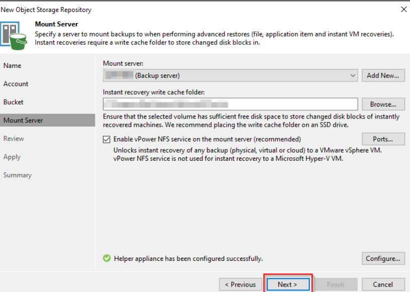 **Step 8:** In the "**Mount Server**" screen, users can choose the server needed to backup data, then click "**Next**".